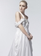 Are you longing for a wedding dress that will be memorable? Look at this one. The one shoulder strapless neckline hemmed with heavy ruched fabric and bead works illustrates fashion properly. The ruching texture on the whole dress is another lightspot to flatter your waistline. With the favorite chiffon fabric, the skirt encrusted with nature ruffles holds to form a fullness effect. A ruched tie on the same side of the one shoulder strap is another lightpot of the dress.To be the most cool and elgance bride, What are you waiting for?