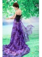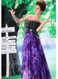 Take a walk on the wild side in this fabulous printed dress. It features a strapless asymmetrical neckline and a vivid butterfly decration on the front and back. The gorgeous empire skirt is made from many scraps in the front, which add to its beauty, fullness and lovely shape. A long train add the charm. This is a fantastic choice for someone wanting something a little different for their special occasion.