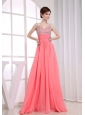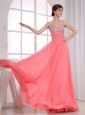 Beading Empire Straps Watermelon Chiffon Floor-length Prom Dress