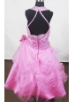 Beading Halter and Hand Made Flower For Little Girl Pageant Dresses