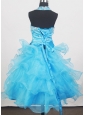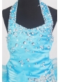 Beading Halter and Ruffled Layers Little Girl Pageant Dresses  With Aqua Blue