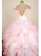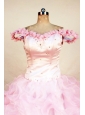 Beading Luxurious Ball gown Organza Off the shoulder neck Floor-length Pink Beading Little Girl Pageant Dresses