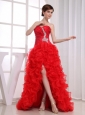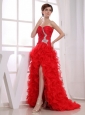Beading Mermaid Sweetheart Prom Dress Organza High-low Red