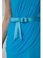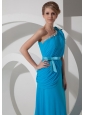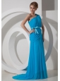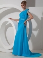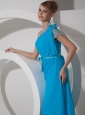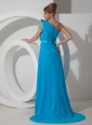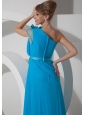 Beading One Shoulder 2013 Prom Dress Chiffon Empire Aqua Blue