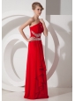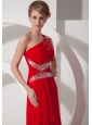 Home >  Evening Dresses > Beading One Shoulder Chiffon Red Column / Sheath Floor-length Evening Dress