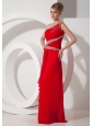 Beading One Shoulder Chiffon Red Column / Sheath Floor-length Evening Dress