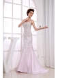Beading Over Skirt Mermaid Spaghetti Straps Light Pink Brush Train Prom Dress For 2013