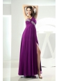 Beading Prom Dress Chiffon Fuchsia Empire Watteau One Shoulder High Slit
