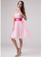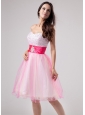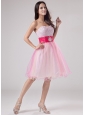 Beading Prom Dress Strapless Organza Mini-length A-Line Pink