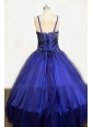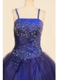 Beading Romantic Spaghetti Straps Tulle and Taffeta Ball gown Royal Blue Little Girl Pageant Dresses Floor-length