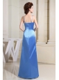 Beading Sky Blue Prom Dress With Straps Floor-length Satin