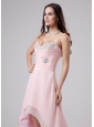 Beading Spaghetti Straps Empire Chiffon High-low Prom Dress Pink