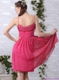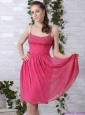 Beading Spaghetti Straps Ruching Coral Red Prom Dresses for 2015