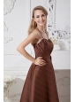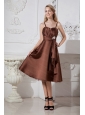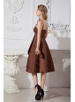 This brown bridesmaid dress is youthful and chic. Thus, this gorgeous prom dress will conquer countless hearts of students. The ruched bodice is defined by sweetheart neckline and a pleated waistband with a beaded bowknot by the side make you feel you are fairy dancing in the flowering shrubs. Thin trap design with zipper closure and cute skirt, this prom dress is perfect for party, cocktail and banquet.