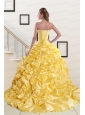 Beading Strapless 2015 Quinceanera Dresses with Sweep Train