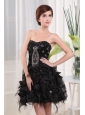 Beading Strapless A-Line Black Tulle Mini-length Prom Dress