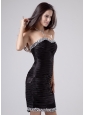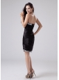 Beading Strapless Column Knee-length Taffeta Prom Dress Black