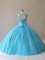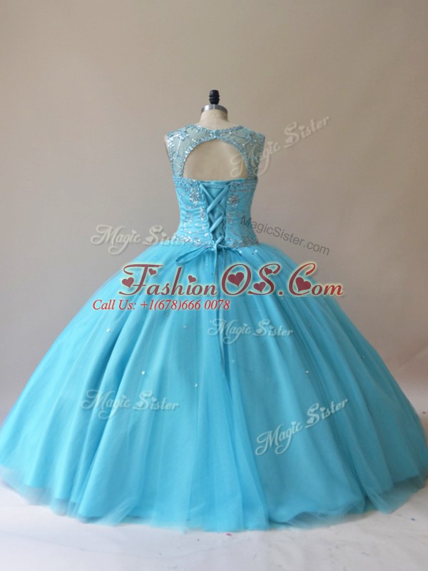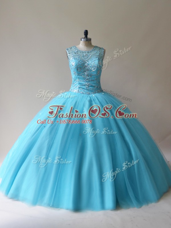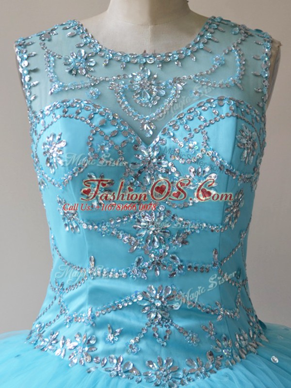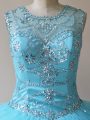 Beading Sweet 16 Dresses Baby Blue Lace Up Sleeveless Floor Length