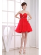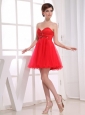 Beading Sweetheart Tulle Mini-length A-Line Red Prom Dress