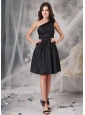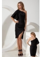 Home >  Special Occasion Dresses >  Little Black Dresses > Beading Taffeta One Shoulder Mini-length Column / Sheath Black Prom Dress Long Sleeve