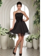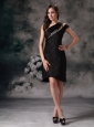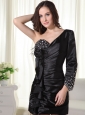 Beading Taffeta One Shoulder Mini-length Column / Sheath Black Prom Dress Long Sleeve