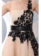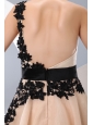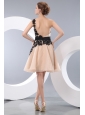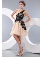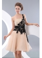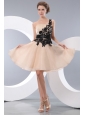 Beat Champagne Short Prom / Homecoming Dress A-line / Princess One Shoulder Mini-length Organza Appliques