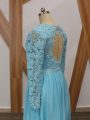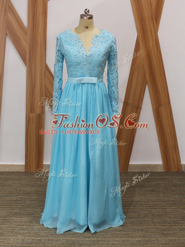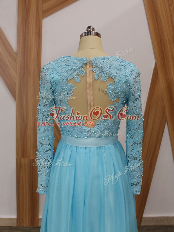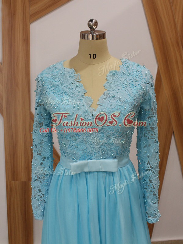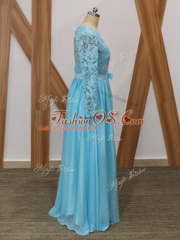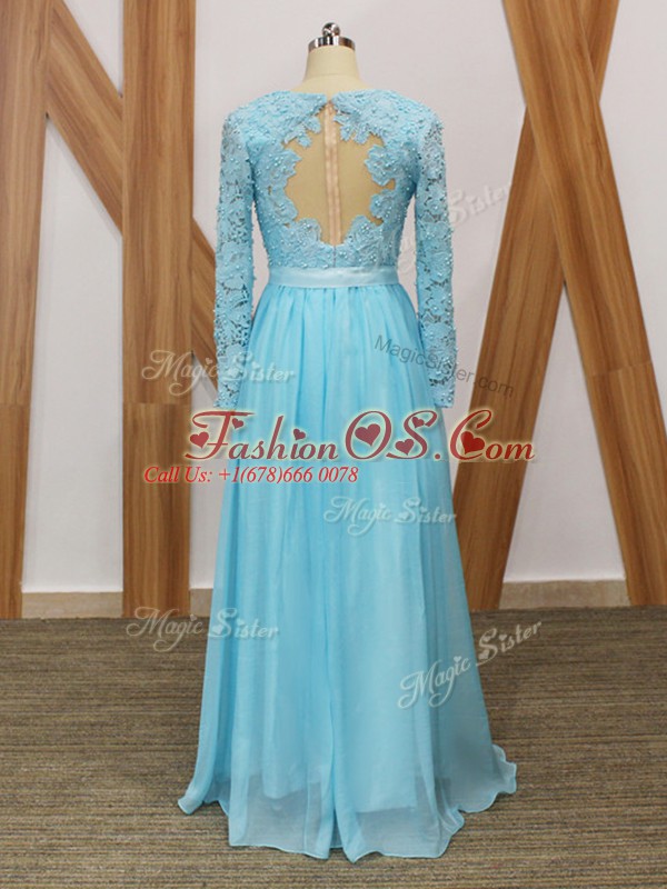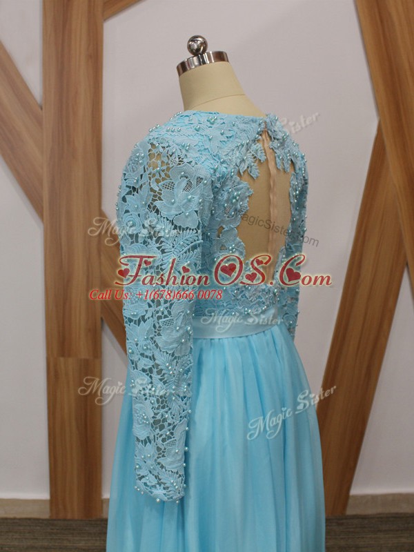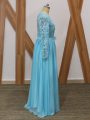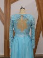 Beauteous Baby Blue Long Sleeves Lace Floor Length Mother Of The Bride Dress