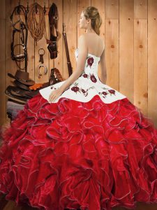 Home >  Quinceanera Dresses >  Unique Quinceanera Dresses > Beauteous Ball Gowns Ball Gown Prom Dress White And Red Halter Top Satin and Organza Sleeveless Floor Length Lace Up
