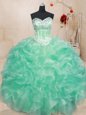 Beauteous Ball Gowns Sweet 16 Dresses Apple Green Sweetheart Organza Sleeveless Floor Length Lace Up