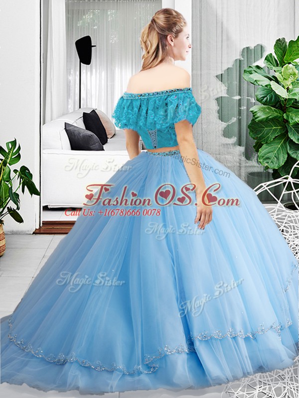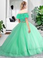Beauteous Burgundy Lace Up Off The Shoulder Lace and Ruffles 15 Quinceanera Dress Tulle Sleeveless