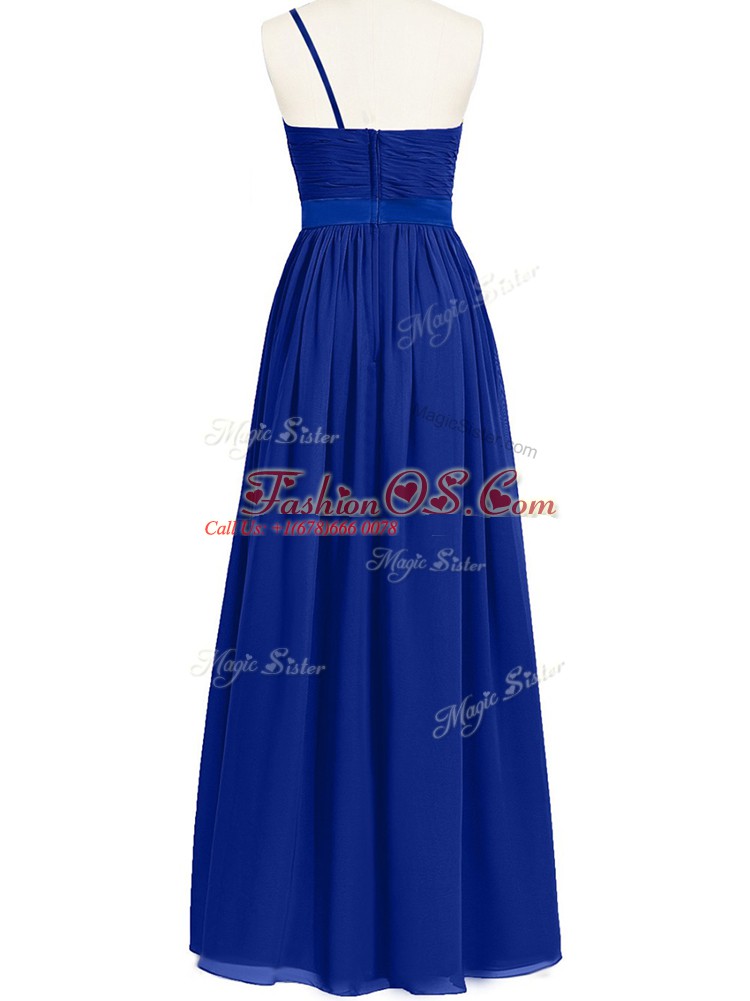 Beauteous Chiffon One Shoulder Sleeveless Zipper Ruffles and Ruching Quinceanera Court of Honor Dress in Royal Blue
