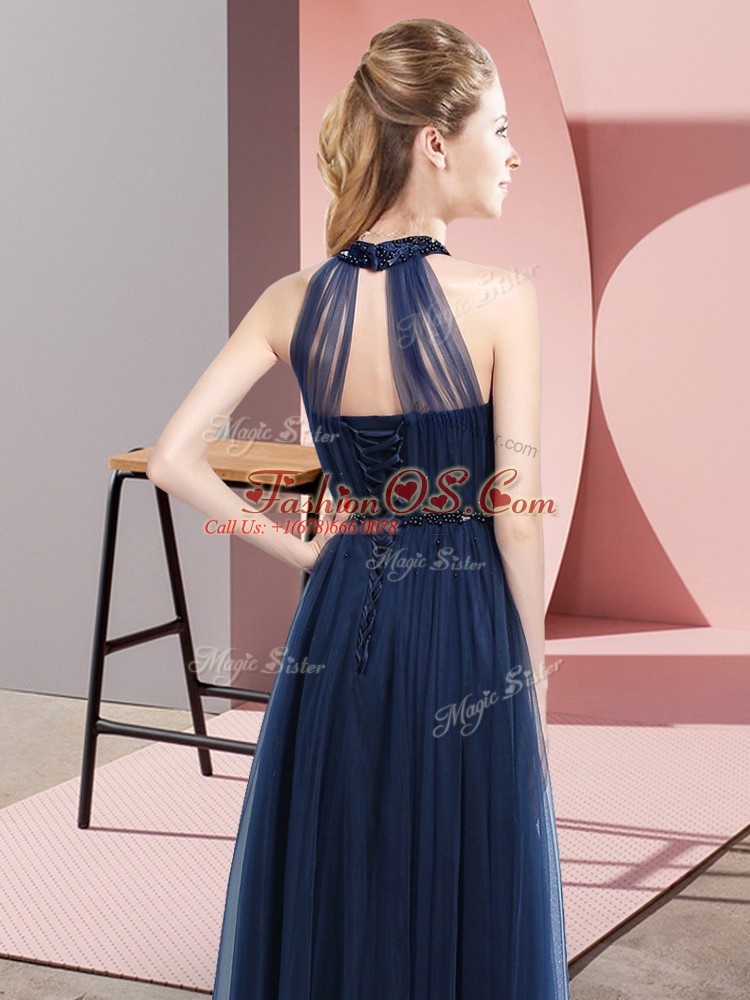 Beauteous Dark Green Damas Dress Wedding Party with Beading and Appliques Halter Top Sleeveless Lace Up
