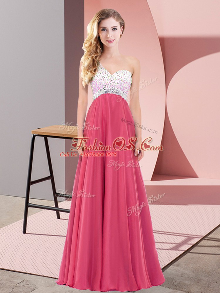 Home >  Prom Dresses >  Fashionable Prom Dresses > Beauteous Floor Length Coral Red Prom Dresses Chiffon Sleeveless Beading