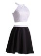 Beauteous Halter Top Satin Sleeveless Mini Length Homecoming Dress and Beading