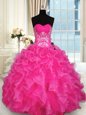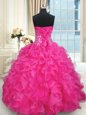 Beauteous Hot Pink Sweetheart Neckline Beading and Appliques and Ruffles Ball Gown Prom Dress Sleeveless Lace Up