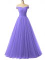 Beauteous Lavender Off The Shoulder Neckline Ruching Military Ball Gown Sleeveless Lace Up