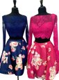 Beauteous Mini Length Multi-color Prom Dresses Satin Long Sleeves Lace