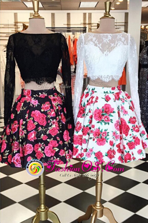 Beauteous Multi-color A-line Lace Bateau Long Sleeves Lace and Pattern Knee Length Zipper Prom Party Dress