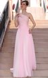 Home >  Prom Dresses >  Modest Prom Dresses > Beauteous One Shoulder Hot Pink A-line Beading and Hand Made Flower Prom Gown Side Zipper Chiffon Sleeveless Floor Length