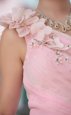 Beauteous One Shoulder Hot Pink A-line Beading and Hand Made Flower Prom Gown Side Zipper Chiffon Sleeveless Floor Length