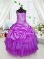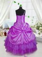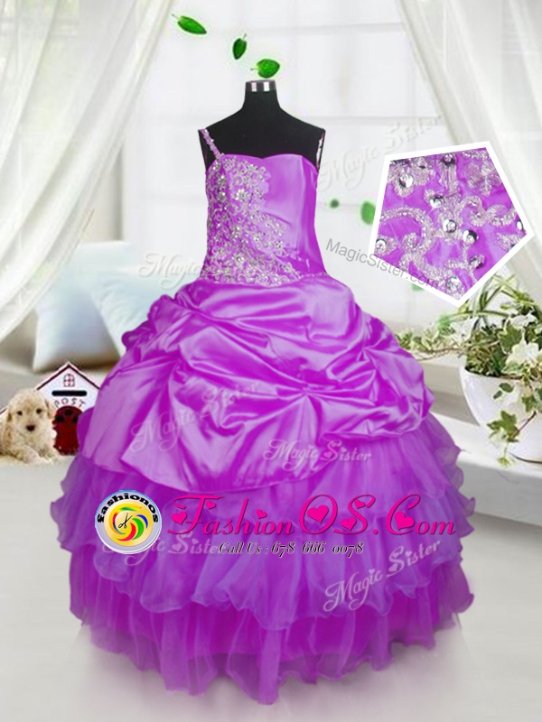 Home >  Special Occasion Dresses >  New Style Little Girl Pageant Dresses > Beauteous One Shoulder Sleeveless Satin and Tulle Floor Length Lace Up Little Girls Pageant Dress Wholesale in Lavender for with Beading and Ruffled Layers and Pick Ups