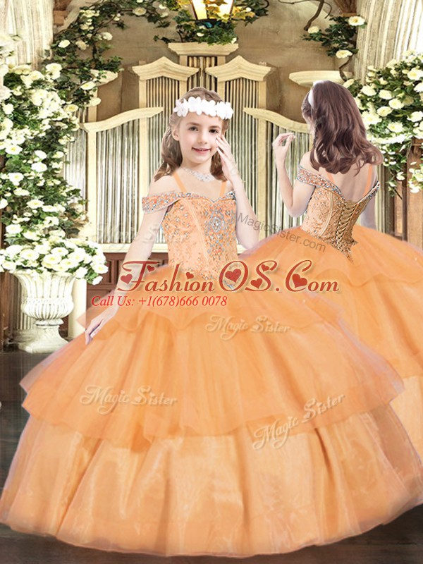 Home >  Special Occasion Dresses >  Lovely Little Girl Pageant Dresses > Beauteous Orange Lace Up Little Girl Pageant Dress Beading and Ruffled Layers Sleeveless Floor Length
