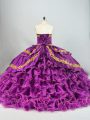 Beauteous Purple Ball Gowns Embroidery and Ruffles Quinceanera Dress Lace Up Satin and Organza Sleeveless
