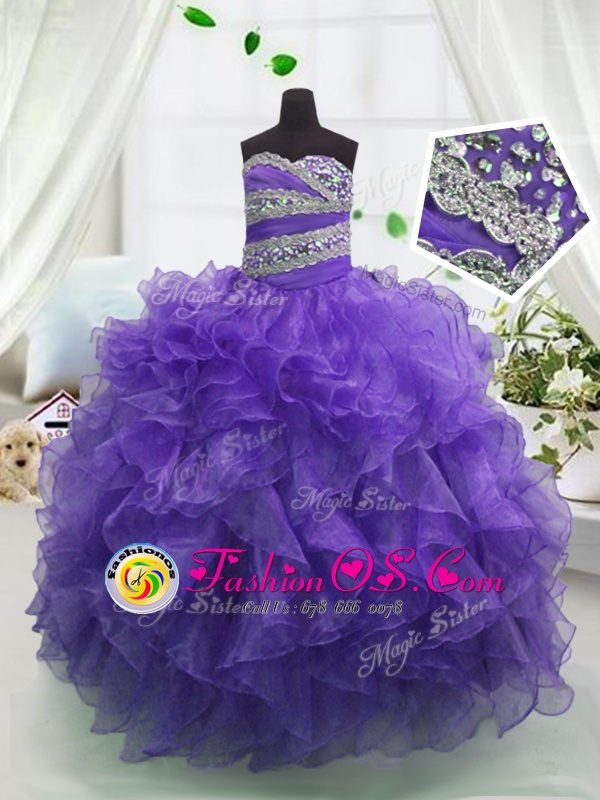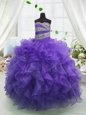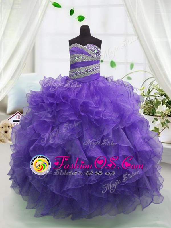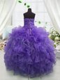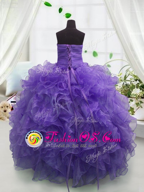 Beauteous Red Lace Up Kids Formal Wear Beading and Pick Ups Sleeveless Floor Length