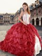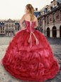 Home >  Quinceanera Dresses >  Cute Quinceanera Dresses > Beauteous Red Tulle Lace Up Quinceanera Dress Sleeveless Floor Length Beading and Pick Ups