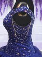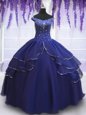 Home >  Quinceanera Dresses >  Sweet 16 Dresses > Beauteous Royal Blue Ball Gowns Organza Off The Shoulder Sleeveless Beading and Ruffled Layers and Sequins Floor Length Lace Up Quinceanera Dresses