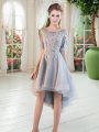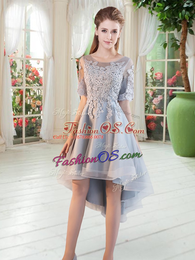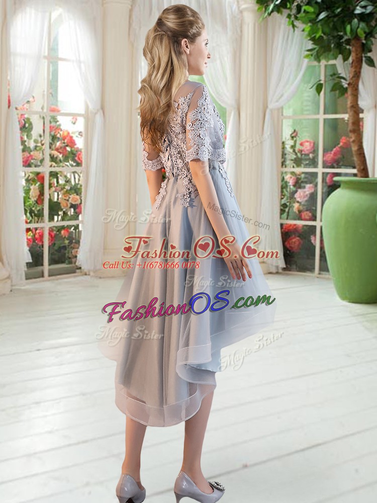 Home >  Prom Dresses >  Fashionable Prom Dresses > Beauteous Scoop Half Sleeves Lace Up Grey Tulle