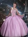 Beauteous Sleeveless Beading Lace Up Quinceanera Gown
