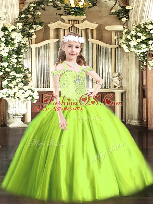 Home >  Special Occasion Dresses >  Beautiful Kids Pageant Dresses > Beauteous Sleeveless Floor Length Beading Lace Up Pageant Dress Womens with Yellow Green