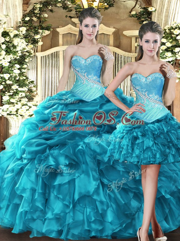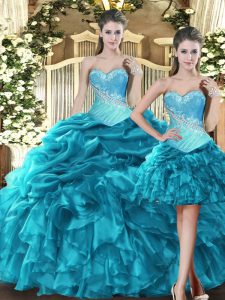 Beauteous Sleeveless Lace Up Floor Length Beading and Ruffles Sweet 16 Dresses